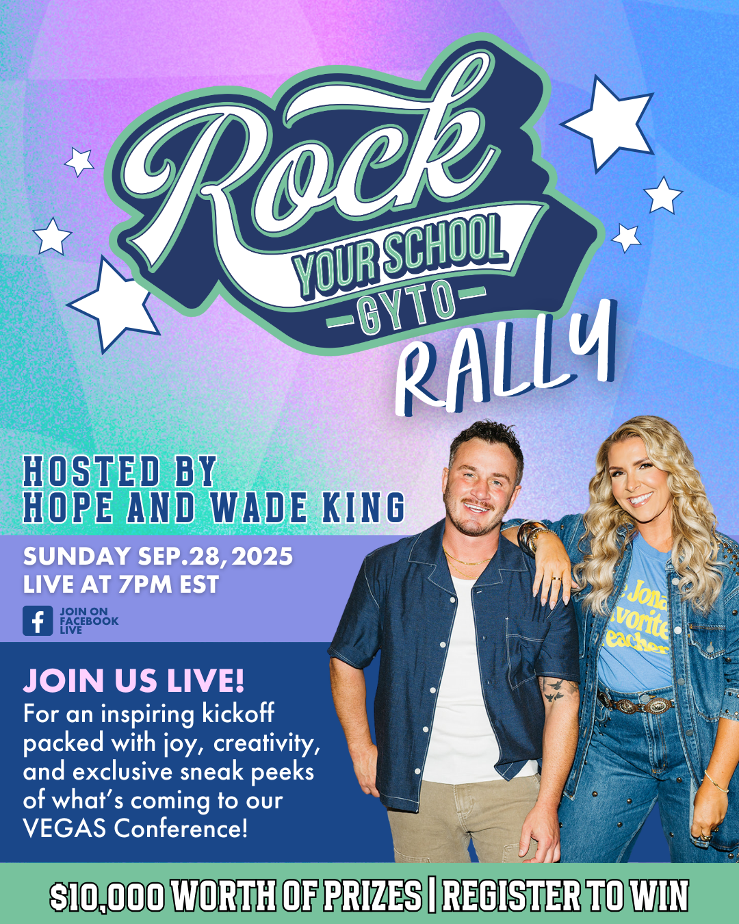 Join the GYTO Team for incredible giveaways while we kick off Rock Your School and make some BIG announcements for our Las Vegas Conference on September 28th at 7pm ET!